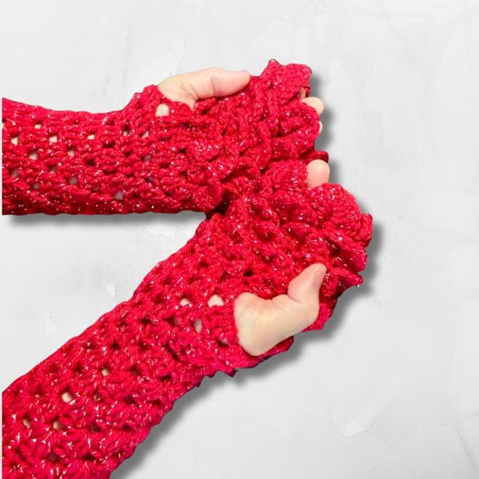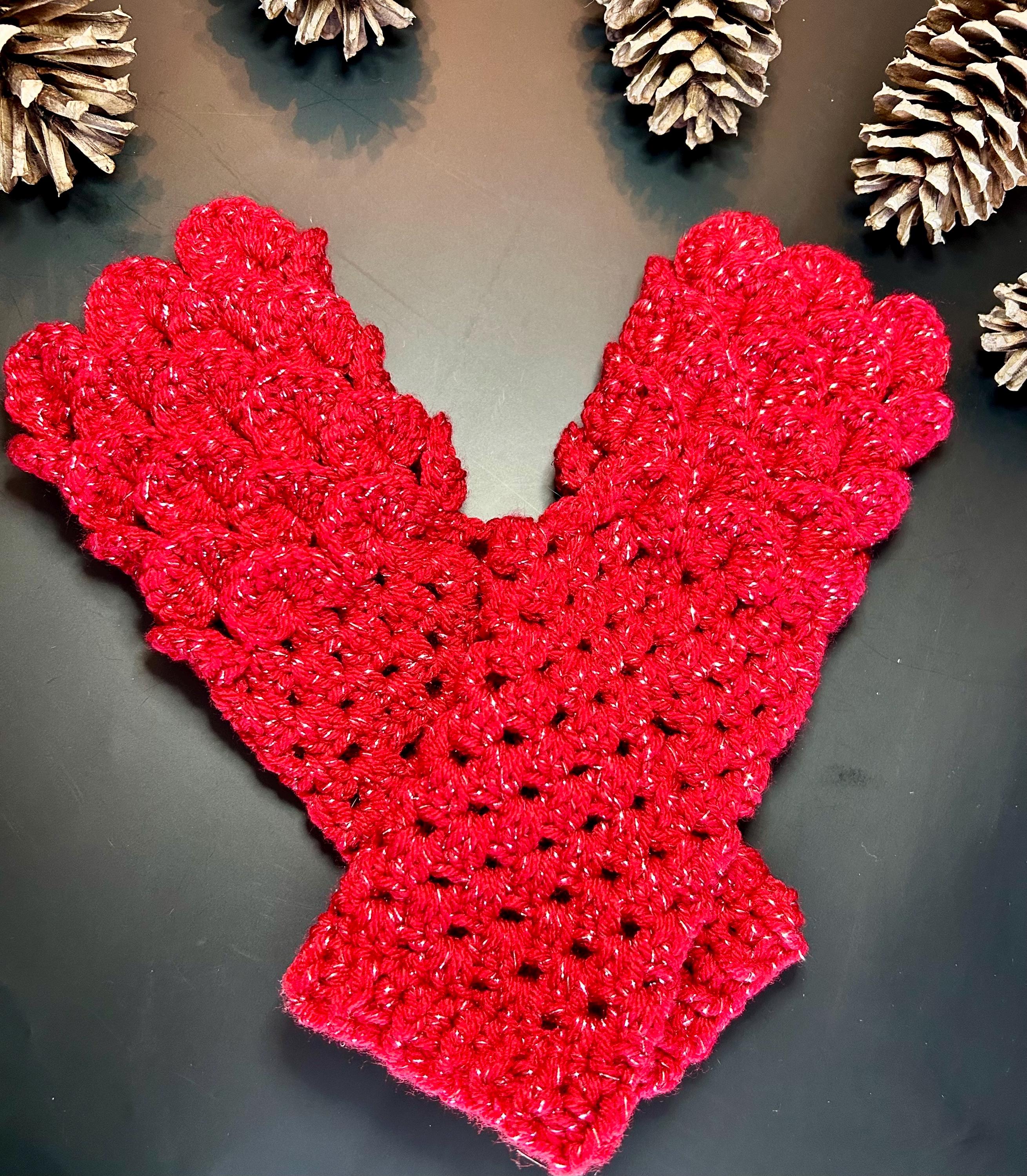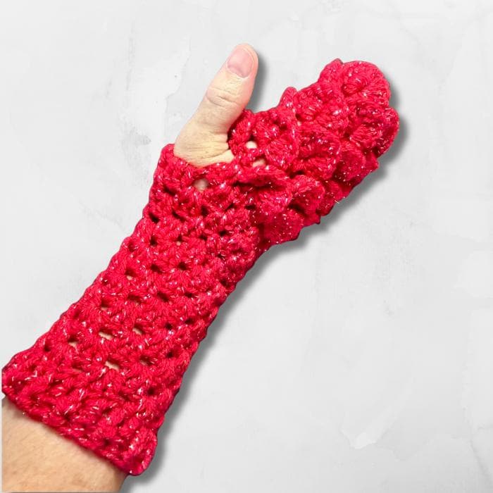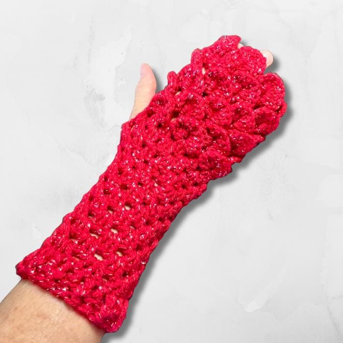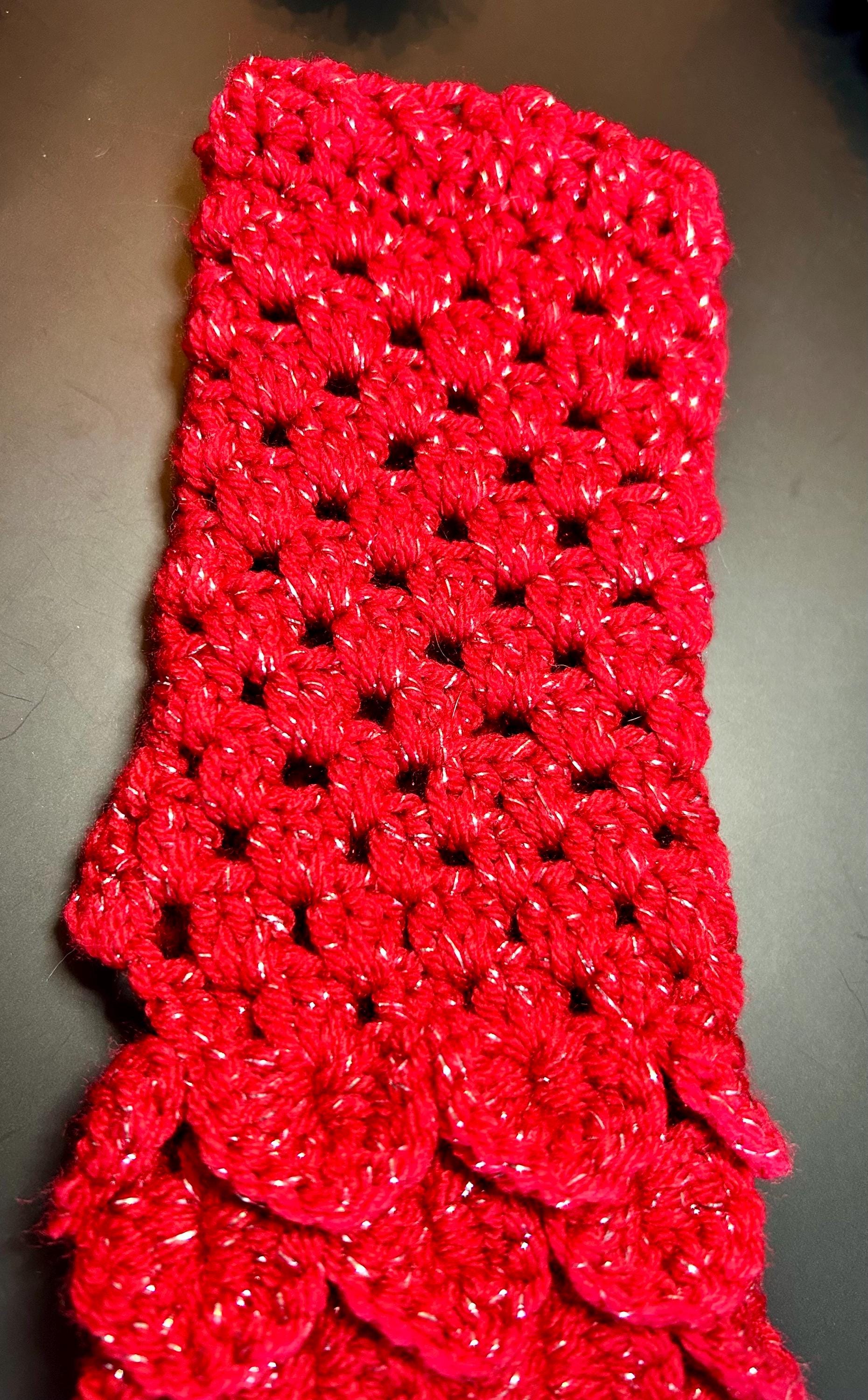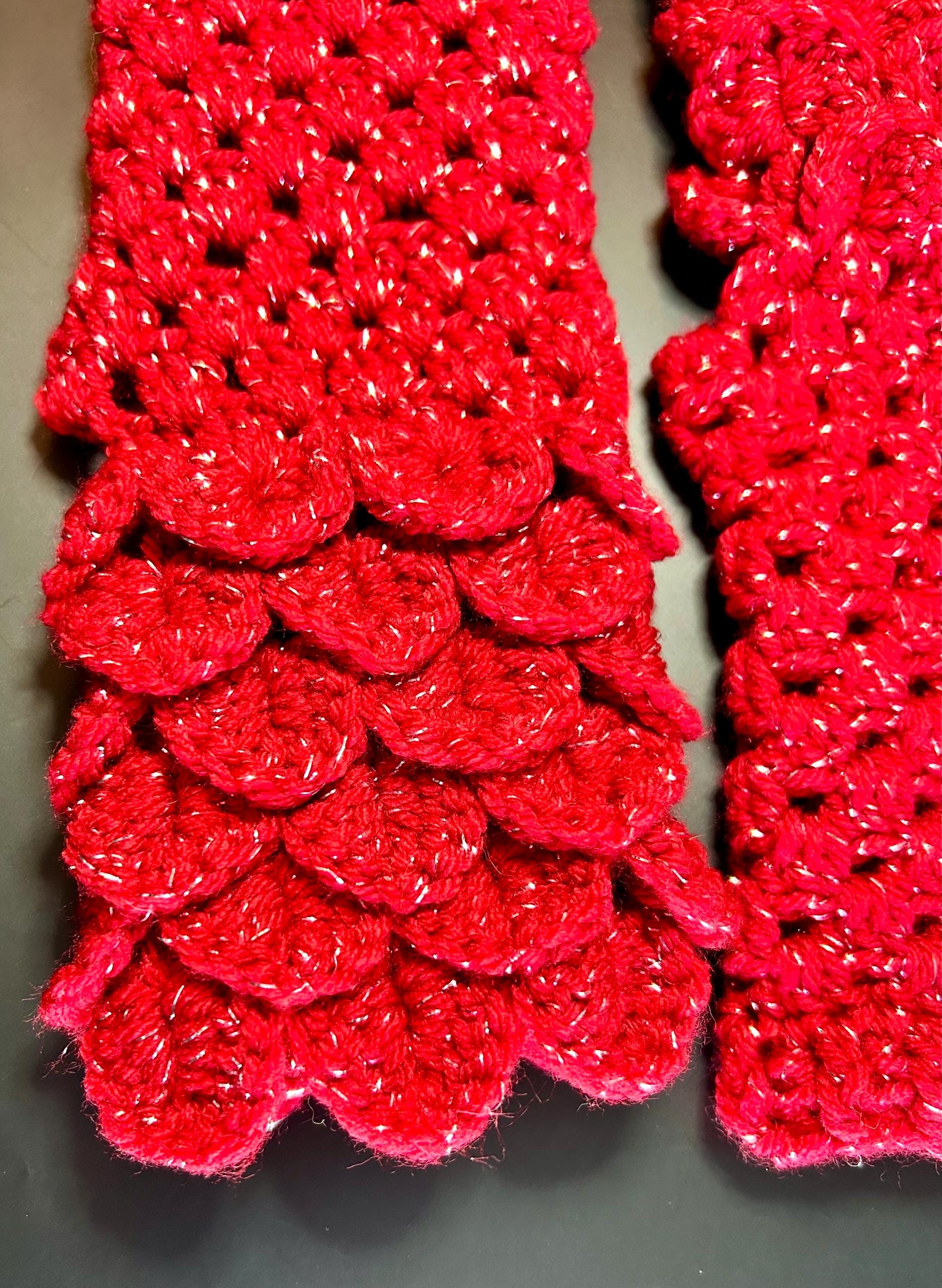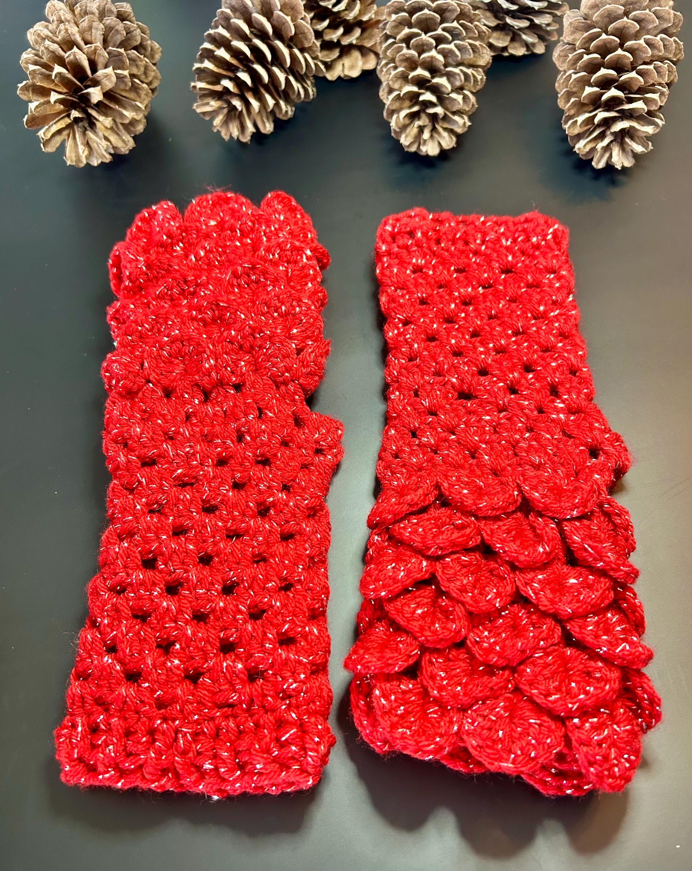 Dragon Scale Fingerless Gloves, Red Sparkle Mermaid Mitts are hand crocheted with an acrylic metallic yarn to give it’s sparkle. They are soft, warm, thick and perfect for the upcoming Holidays, Valentine’s Day or if you just love the color red.