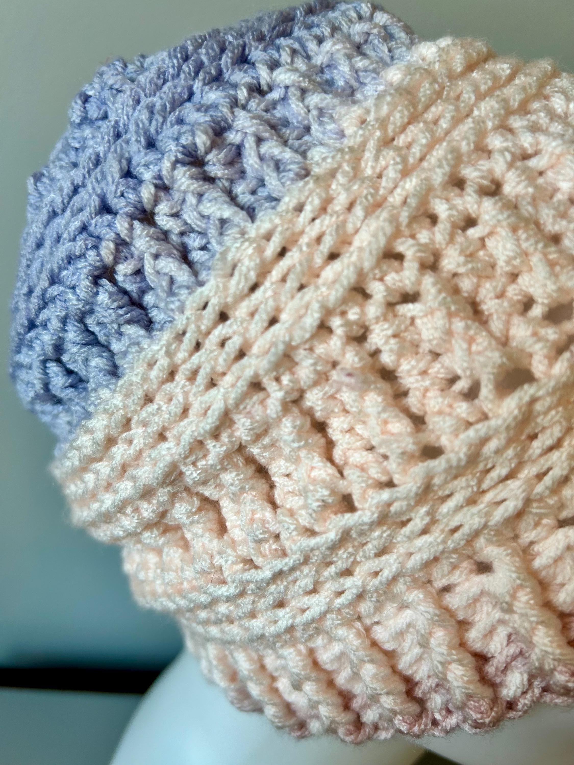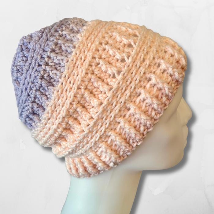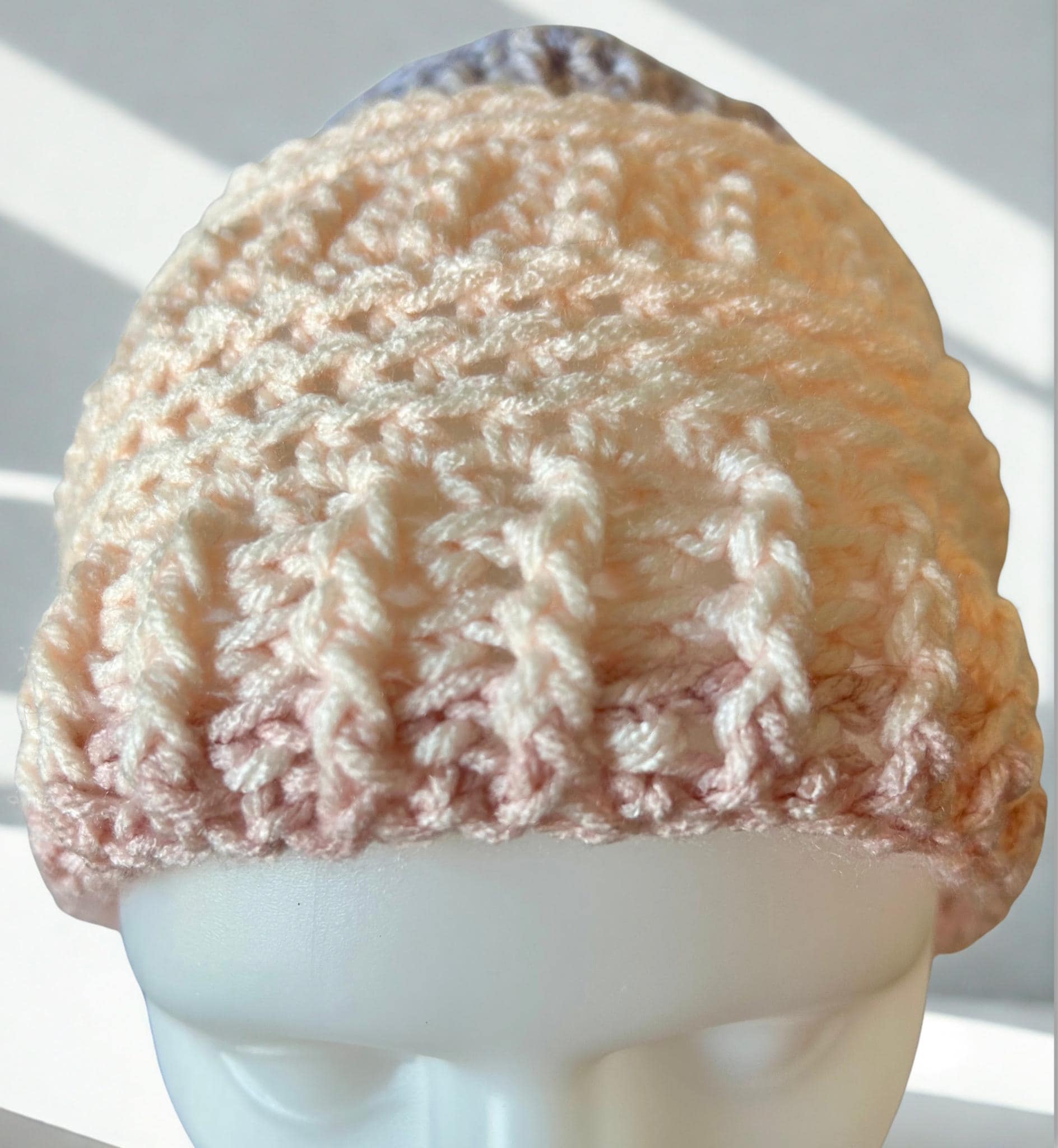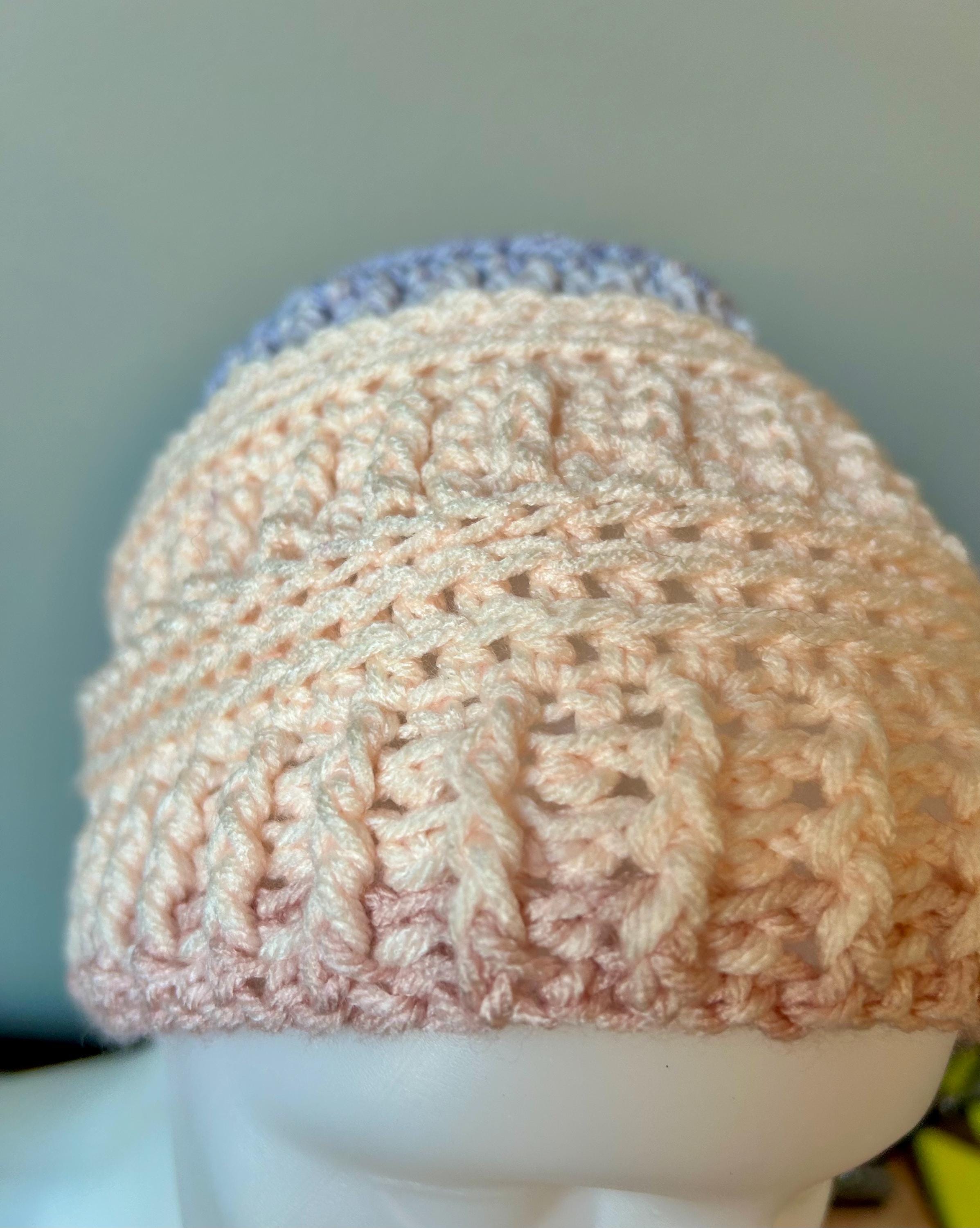 The Crochet Messy Bun Hat in Light Pink/Purple is a handmade beanie perfect for travel, activewear, and casual occasions. Made of acrylic material with an elastic crocheted into the top opening to hold your messy bun or ponytail securely. This hat features a solid color blocking design in shades of light pink to purple. It has a stretchy construction, making it packable and breathable for outdoor wear in the winter and fall seasons. With a modern and colorful theme, this hat adds a touch of hipster and festival flair to any outfit, making it a stylish and versatile accessory for women looking to add a pop of pink to their wardrobe.